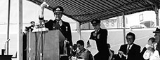 Sur cette photo, on observe le duc de Kent qui discute avec M. Édouard Simard en sortant de Sorel Industries.